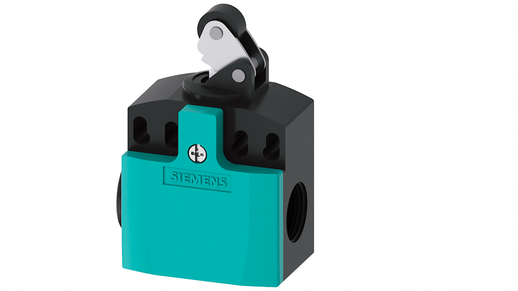 Interruttore di fine corsa Siemens, rullo, 1NC/1NA, 400V, 4A, IP66/IP67, custodia in plastica conforme a EN 50047, collegamento dispositivo con ingresso cavo da 50 mm 2 x (M20 x 1,5), apertura positiva, adatto per interruttore di sicurezza.