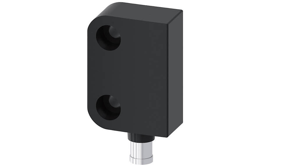 Interruttore di sicurezza senza contatto, tensione 30V cc, contatti di sicurezza 2NC/1NA, grado di protezione IP67, dimensioni 26 x 33 mm, materiale custodia plastica, tipo di attuatore magnetico, distanza di commutazione 5 mm e 15 mm, installazione meccanica quasi a filo, serie 3SE, marchio Siemens.