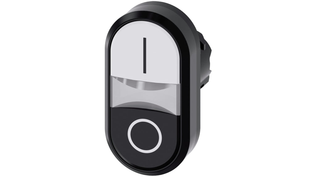 Pulsante tipo Instabile della serie SIRIUS ACT, diametro foro 22 mm, colore nero e bianco, attuazione a pulsante, forma ovale, materiale plastica, protezione IP66, IP67, IP69K, diametro pulsante 29.9 mm, montaggio su pannello frontale, collegamento conduttore posteriore. Codice costruttore 3SU1000-3AB61-0AK0, marchio Siemens.