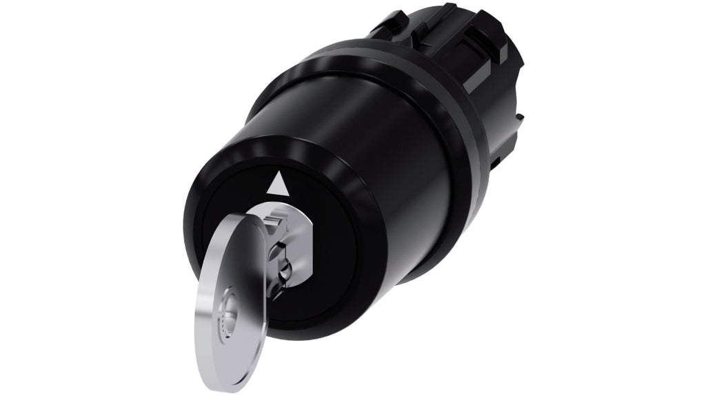 Testa selettore Siemens serie SIRIUS ACT, 3 posizioni, diametro foro 22mm, tipo chiave S1, posizione di estrazione chiave II, attivazione interruttore stabile, grado di protezione IP66, IP67, IP69, angolo di corsa 45 gradi, numero di chiavi 2, temperatura operativa da -25 a +70 gradi, durata meccanica 1000000 cicli. Dispositivo singolo, supporti e moduli da ordinare separatamente.