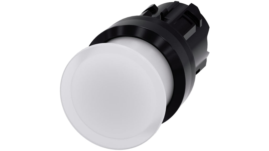 Attuatore pulsante tipo Instabile, diametro foro 22mm, colore bianco, tipo di pulsante rotondo, materiale plastica, protezione IP66, IP67, IP69K, diametro pulsante 30mm. Installazione semplice con concetto snap-on, adatto per ambienti industriali ed esterni, compatibile con cablaggio standard e connessioni PROFINET, AS-Interface o io-link. Dispositivo singolo, supporti e moduli da ordinare separatamente.