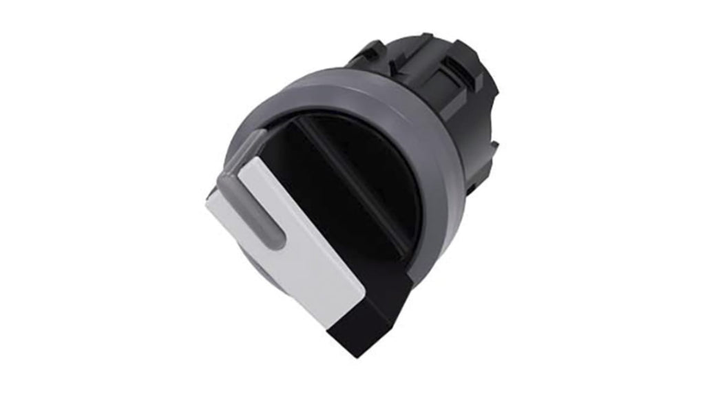 Teste per selettore Siemens SIRIUS ACT, 2 posizioni, diametro 22 mm, realizzate in plastica di alta qualità, protezione IP66, IP67, IP69K, automantenimento dell'attuatore durante il montaggio, protezione antirotazione integrata, angolo di corsa 90 gradi, standard IEC 60947-1, EN 60947-1, IEC 60947-5-1, EN 60947-5-1, montaggio senza utensili particolari.