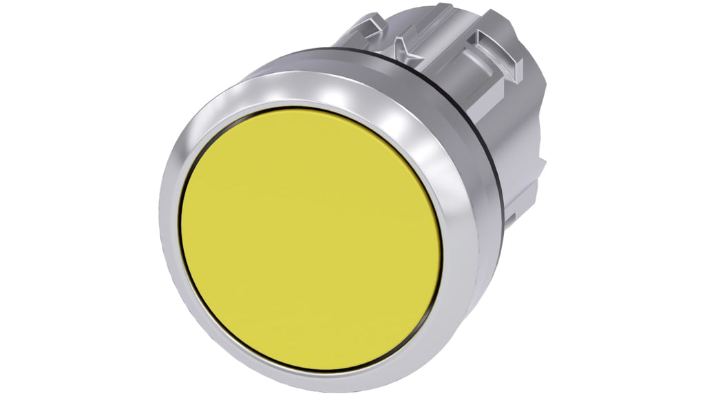 Pulsante tipo Ad aggancio, diametro foro 22 mm, colore giallo, attuazione a pulsante, rotondo, materiale plastico con anello anteriore in metallo lucido, protezione IP66, IP67, IP69K, per uso in ambienti estremi, funzione di automantenimento, protezione antirotazione integrata, standard IEC 60947-1, EN 60947-1, IEC 60947-5-1, EN 60947-5-1.