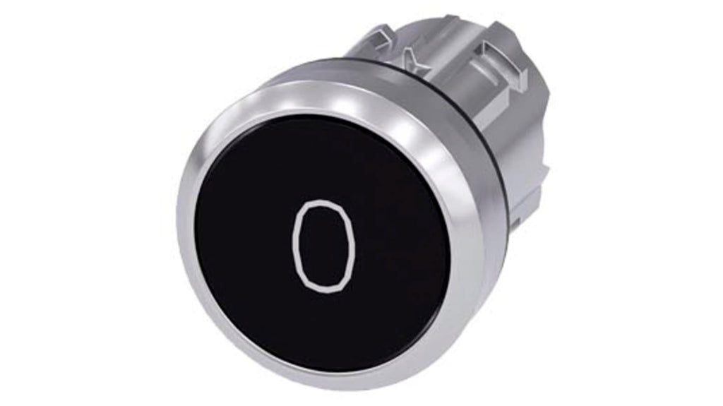 Pulsante tipo instabile, 22 mm, rotondo, metallo lucido, nero, iscrizione O, attuazione a pulsante, contatto momentaneo piatto, protezione IP66, IP67, IP69K, diametro pulsante 29.5 mm, materiale plastica, serie SIRIUS ACT, codice costruttore 3SU1050-0AB10-0AD0, marchio Siemens.