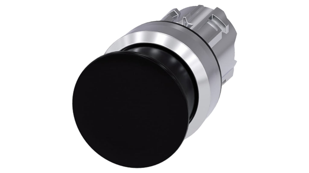 Attuatore pulsante tipo Instabile, diametro foro 22 mm, colore nero, forma rotonda, materiale in metallo lucido, contatto momentaneo, diametro pulsante 30 mm, grado di protezione IP66, IP67, IP69K, serie 3SU1050, codice costruttore 3SU1050-1AD10-0AA0, marchio Siemens.