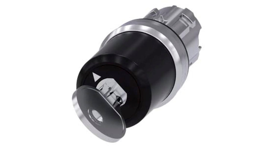 Testa selettore Siemens serie SIRIUS ACT, interruttore a chiave BKS, 22 mm, rotondo, in metallo lucido, serratura n. S1, 2 posizioni di commutazione O-I, blocco, angolo di azionamento 90 gradi, rimozione della chiave O+I, 2 chiavi incluse, protezione IP20, IP66, IP67, IP69, IP69K, temperatura operativa da -25 a +70 gradi, durata meccanica 300000 cicli.