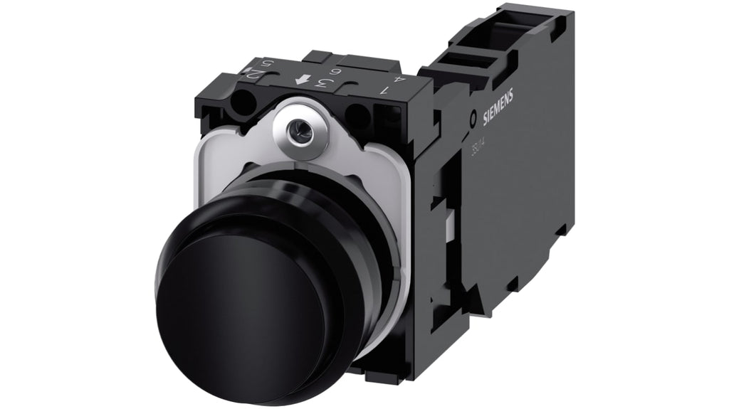 Unità completa pulsante Siemens, SPST, IP66, IP67, IP69(IP69K), diametro forature pannello 22mm, colore pulsante nero, tipo di pulsante rotondo, materiale pulsante plastica, tensione massima c.c. 500V, massima temperatura operativa +70C, minima temperatura operativa -25C, tipo terminale a vite, serie SIRIUS ACT, codice produttore 3SU1100-0BB10-1FA0.