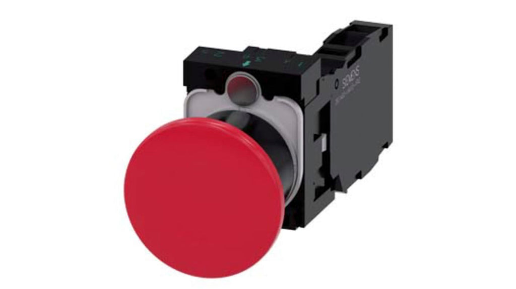 Pulsante Siemens illuminato montato su telaio, configurazione SPST, diametro foratura 22 mm, colore rosso, corpo rotondo in plastica, contatto 1-NC, collegamento a vite, temperatura operativa -25 a 70 gradi Celsius, tensione massima 500 VAC/VDC, grado di protezione IP20, IP66, IP67, IP69, certificazioni EC/EN 60947-1, IEC/EN 60947-5-1, IEC/EN 60947-5-5. Codice produttore 3SU1100-1BA20-1FA0.