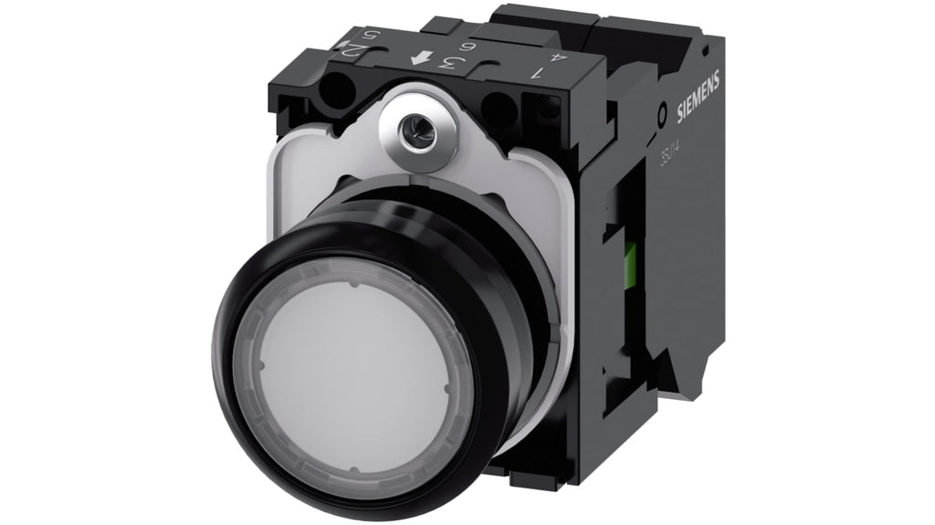 Unità completa pulsante Siemens, SPST, luminoso, IP66, IP67, IP69(IP69K), diametro forature pannello 22mm, colore pulsante trasparente, tipo di pulsante rotondo, materiale pulsante plastica, serie SIRIUS ACT, codice produttore 3SU1102-0AB70-3BA0, massima temperatura operativa 70 gradi Celsius, minima temperatura operativa -25 gradi Celsius, tensione massima c.a. 500V, tensione massima c.c. 500V, materiale corpo plastica.