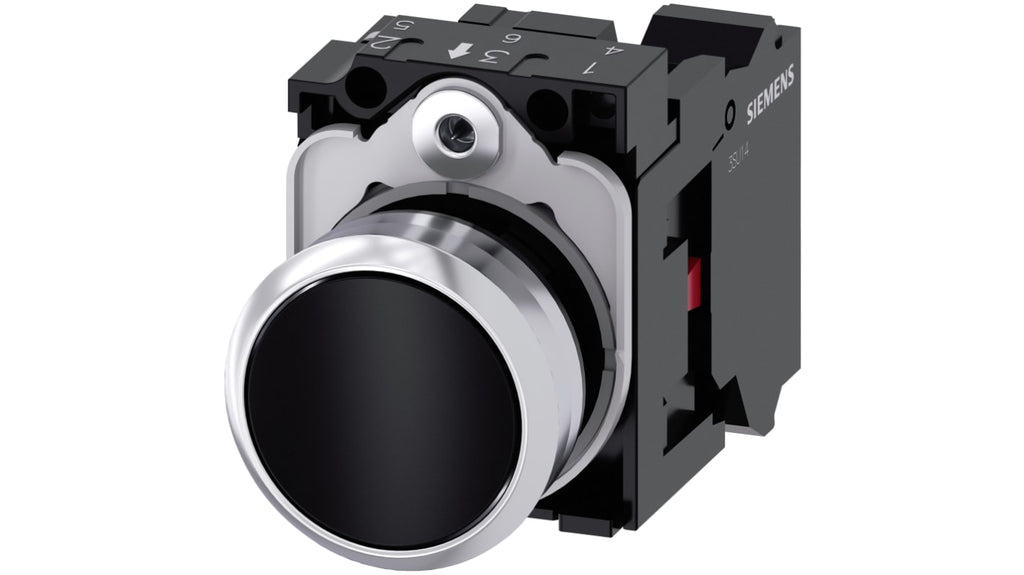 Unità completa pulsante Siemens, SPST, IP66, IP67, IP69(IP69K), diametro forature pannello 22 mm, colore pulsante nero, tipo di pulsante rotondo, materiale pulsante plastica, materiale corpo metallico, configurazione contatto 1 NC, diametro pulsante 29.45 mm, range di temperatura operativa -25 a +70 gradi Celsius, massima tensione c.a. 500V, massima tensione c.c. 500V, serie SIRIUS ACT, codice produttore 3SU1150-0AB10-3CA0.
