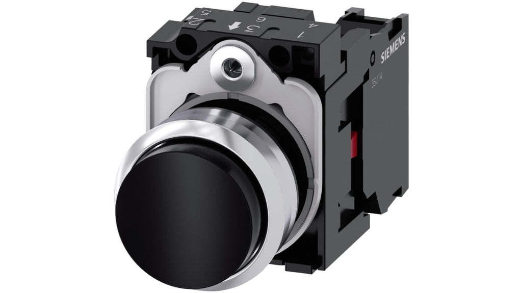 Unità completa pulsante Siemens, SPST, IP66, IP67, IP69(IP69K), diametro forature pannello 22 mm, colore pulsante nero, tipo di pulsante rotondo, materiale pulsante plastica, materiale corpo metallico, tensione massima c.c. 500V, massima tensione c.a. 500V, range di temperatura operativa -25 a 70 gradi Celsius, tipo terminale a vite, serie SIRIUS ACT, codice produttore 3SU1150-0BB10-1CA0.