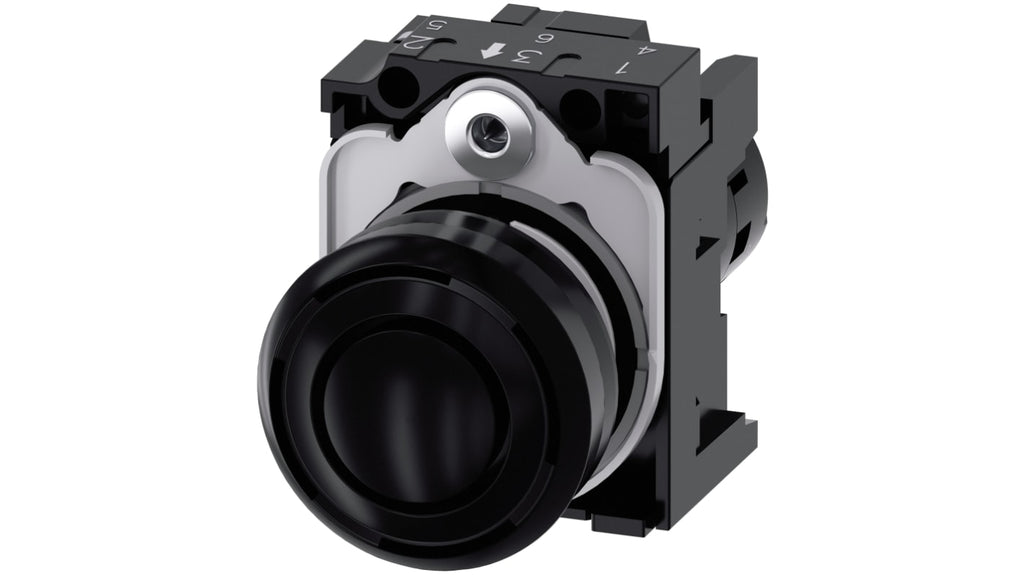 Cicalino acustico compatto, tensione di alimentazione 110 V c.a., montaggio anteriore, diametro 29,5 mm, tono continuo 2,4 kHz, pressione sonora minima 90 dB a 10 cm, materiale plastico nero, serie SIRIUS ACT, temperatura operativa da -25 a +70 gradi Celsius, terminale a vite. Adatto per ambienti industriali, facile installazione con sistema snap-on.