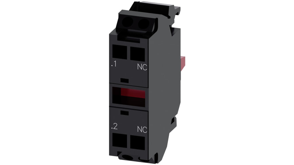 Blocco contatti Siemens, configurazione 1NC, tensione nominale 5 a 500V ca/cc, corrente nominale 10A, tipo terminale a molla, serie SIRIUS ACT. Grado di protezione IP40, progettato per montaggio su piastra frontale, impilabile con altre unità. Funzione di prevenzione della torsione e apertura positiva per affidabilità operativa.