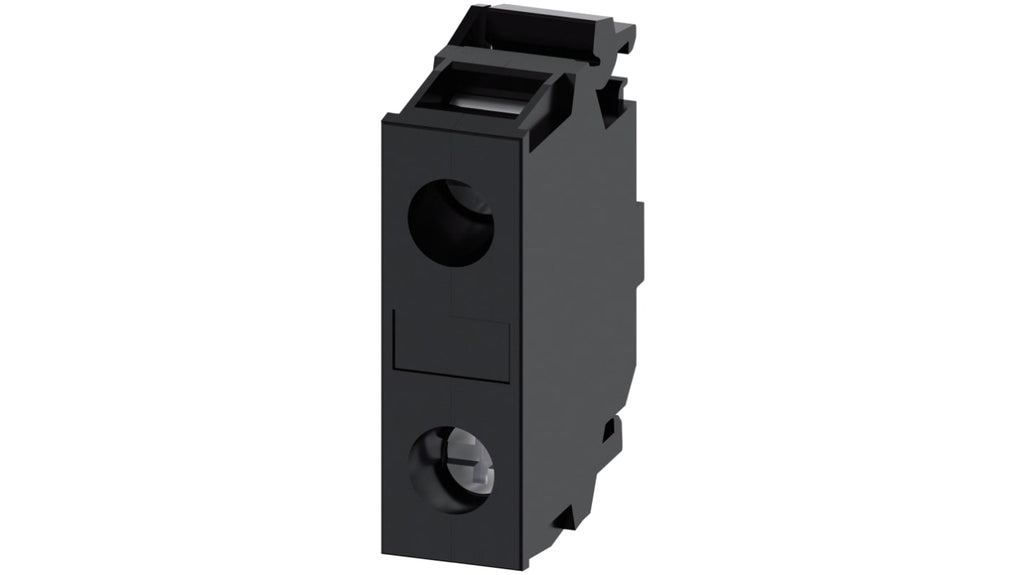 Morsettiera per montaggio a pavimento, terminale di supporto, colore nero, tipo a vite, serie SIRIUS ACT. Progettata per ambienti industriali ed esterni, resistente a polvere, oli e soluzioni caustiche. Installazione semplice con concetto snap-on, compatibile con cablaggio standard e connessioni PROFINET, AS-Interface o io-link. Documentazione completa disponibile.