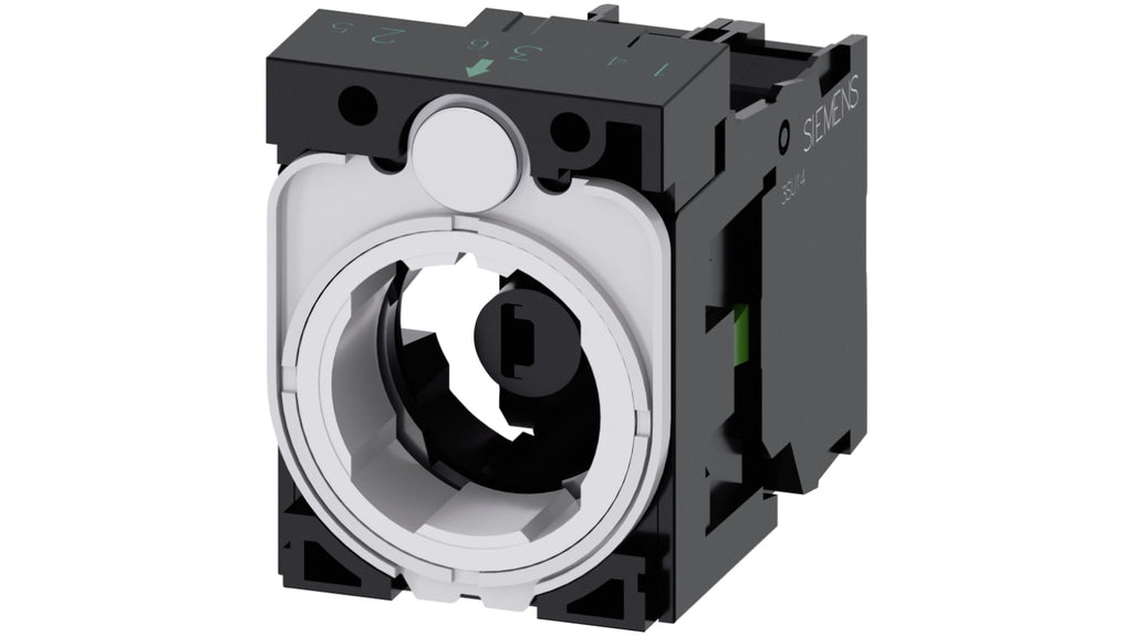 Blocco contatti luminoso con supporto, tensione nominale 6 a 24 V c.a./c.c., configurazione contatto 1 N/A, illuminazione a LED bianco, terminali a vite, corrente nominale 6 A. Parte della serie SIRIUS ACT, design con protezione antirotazione, moduli di contatto impilabili, montaggio senza utensili, adatto per ambienti estremi. Collare di fissaggio incluso. Codice costruttore 3SU1501-1AG60-1BA0. Marchio Siemens.