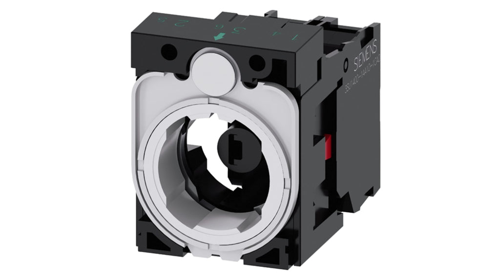 Blocco contatti luminoso con supporto, 1NC, tensione nominale 6-24 V c.a./c.c., LED bianco integrato, terminali a vite, corrente nominale 6A. Parte della serie SIRIUS ACT, design con protezione antirotazione, moduli di contatto impilabili, automantenimento dell'attuatore, montaggio senza utensili, geometria semplice per fori di montaggio, adatto per ambienti estremi. Codice costruttore 3SU1501-1AG60-1CA0, marchio Siemens.