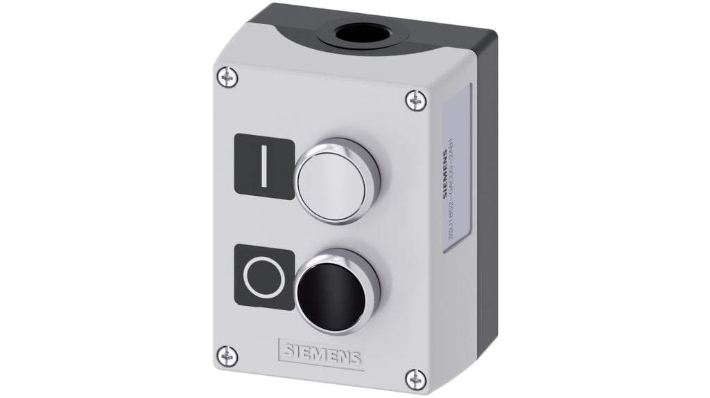 Interruttore stazione di controllo Siemens, 10A, IP66, IP67, IP69, serie SIRIUS ACT, pulsanti nero e bianco in plastica, contenitore rotondo grigio in metallo, diametro foro 22mm, montaggio a pavimento, terminale a vite, tensione massima 500V, temperatura operativa da -25°C a +70°C, dimensioni 118.4mm x 85mm x 75mm, approvazioni globali, configuratore online disponibile. Codice costruttore 3SU1852-0AC00-2AB1.