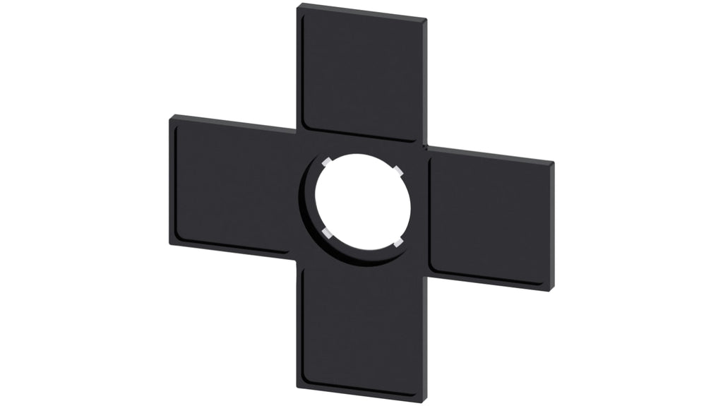 Portaetichette per interruttore, compatibile con dispositivi Sirius ACT, supporta targhette di etichettatura 27mm x 27mm, design robusto in metallo e plastica di alta qualità, installazione snap-on senza attrezzi, protezione anti-torsione integrata, grado di protezione elevato, adatto per ambienti industriali ed esterni, pulizia con getto ad alta pressione consentita, dimensioni 22mm, 4 posizioni interruttore, colore nero.
