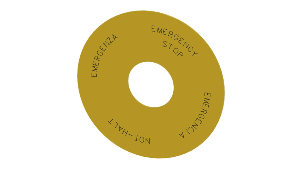 Testo etichetta | Emergencia - Emergency Stop - Emergenza - Not-Halt |
