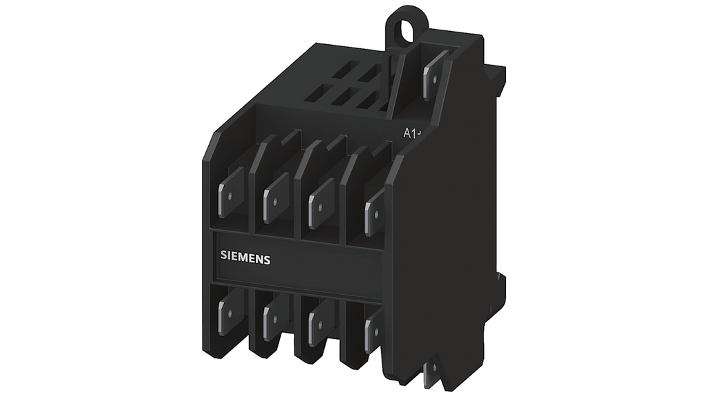 Relè contattore Siemens, serie 3TG1, 4 poli, 3 NA + 1 NC, corrente nominale 16 A, potenza nominale 4 kW, tensione bobina 24 V c.a., terminali a linguetta per collegamento elettrico, montaggio snap-on su guida standard da 35 mm, temperatura ambiente operativa da -25 a +55 gradi Celsius. Codice costruttore 3TG1001-1AC2.