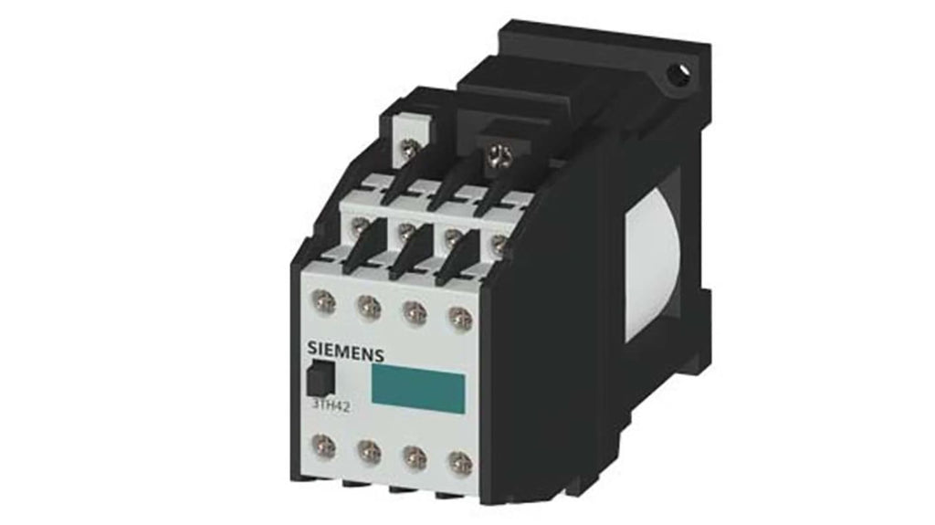 Relè contattore Siemens, 7NO + 1NC, 10 A. Corrente nominale contatto 10 A, tensione di controllo 110 V c.c., classe di protezione IP20, circuito ausiliario con terminali a vite, design con protezione contro cortocircuiti, dimensione contattore 0. Codice costruttore 3TH4271-0LF4.