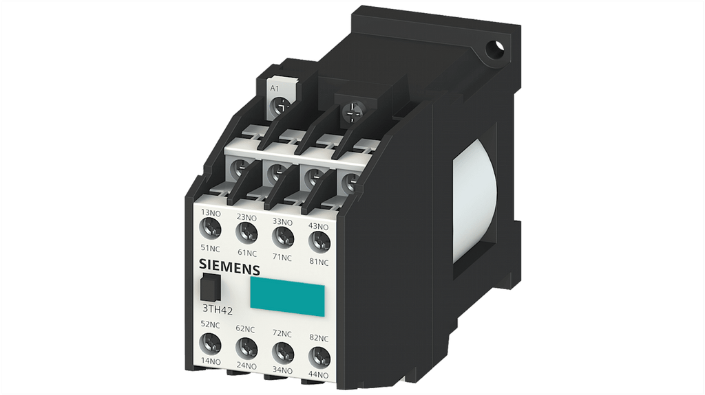 Contattore reversibile per circuiti di controllo. Tensione bobina 24 V c.c., corrente nominale 6 A, 8 poli, configurazione 8NA. Designazione terminale conforme agli standard, collegamento a vite, commutazione simultanea di fino a 10 circuiti ausiliari. Funzionamento ad azionamento positivo per applicazioni di sicurezza. Grado di protezione IP20, temperatura ambiente da -25 a +55 gradi Celsius. Approvato IEC e UL/CSA. Codice costruttore 3TH4280-0BB4. Marchio Siemens.