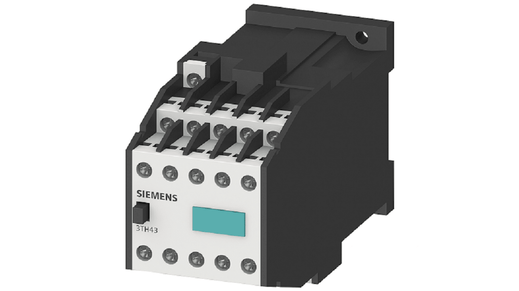 Relè contattore Siemens, 10 A, configurazione contatti 7 NA + 3 NC, classe di protezione IP00, temperatura d'esercizio da -25 a +55 gradi Celsius, terminali a vite, montaggio su guida DIN, tensione di controllo 24 V c.c.