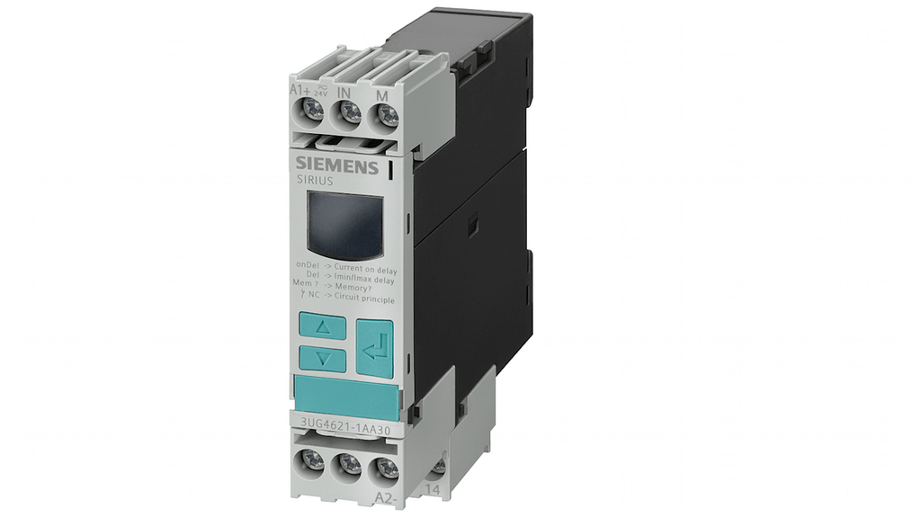 Relè di monitoraggio corrente Siemens serie 3UG, SPDT. Monitoraggio di fase, isolamento galvanico tra ingresso e uscita, reset automatico. Collegamento terminal a vite, grado di protezione IP20. Applicazione di controllo, sensibilità alla tensione, sovratensione. Configurazione contatto: 1.