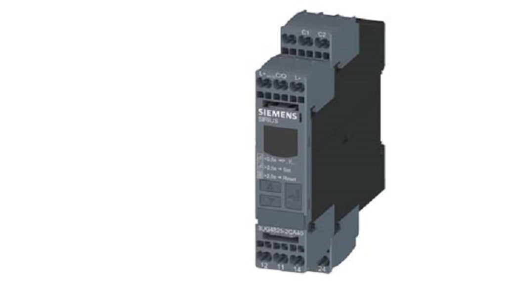 Relè di monitoraggio corrente Siemens, DPDT, per monitoraggio della corrente residua, gamma di impostazione IO-Link da 0,03 A a 40 A, ritardi di attivazione e spegnimento da 0 a 999,9 secondi, isteresi di spegnimento fino al 50%, isteresi di avvertenza del 5%, 2 contatti di commutazione, classe di protezione IP20, grado di inquinamento 3, dimensioni 103 mm x 22,5 mm x 91 mm.