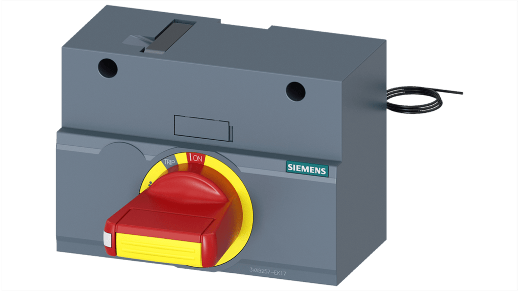 Manopola rotante per arresto di emergenza, compatibile con 3VA1 250, colore rosso, lunghezza 105mm, grado di protezione IP30, accessorio per kit di illuminazione CC 24V 250, serie SENTRON. Codice costruttore 3VA9257-0EK17, marchio Siemens.