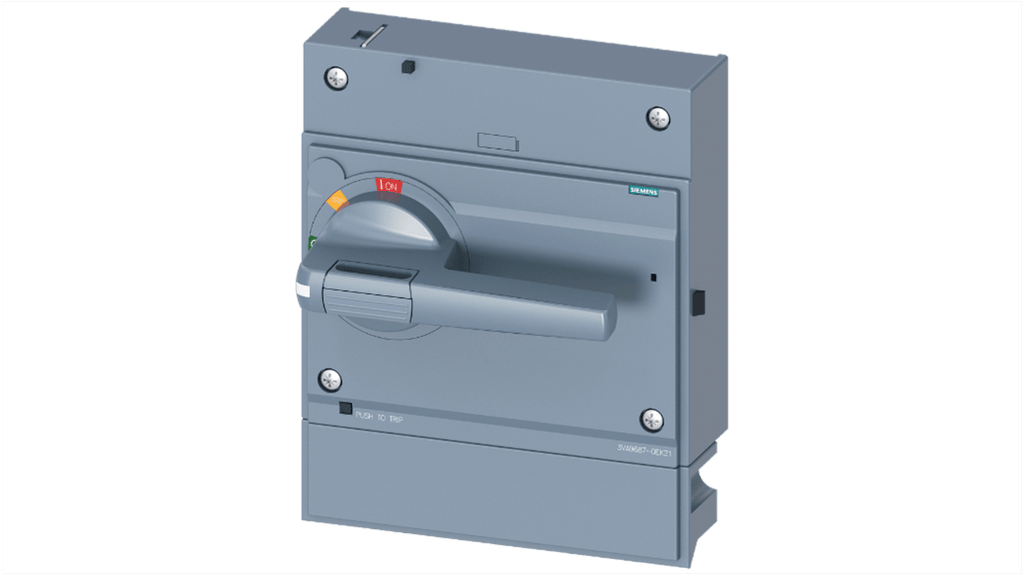 Operatore rotante montato anteriormente per interruttore automatico serie 3VA, blocco interno della porta, colore grigio, protezione IP30, lunghezza 203.2 mm, compatibile con modelli 3VA15/25 1000, parte della serie Sentron 3VA9 di Siemens.
