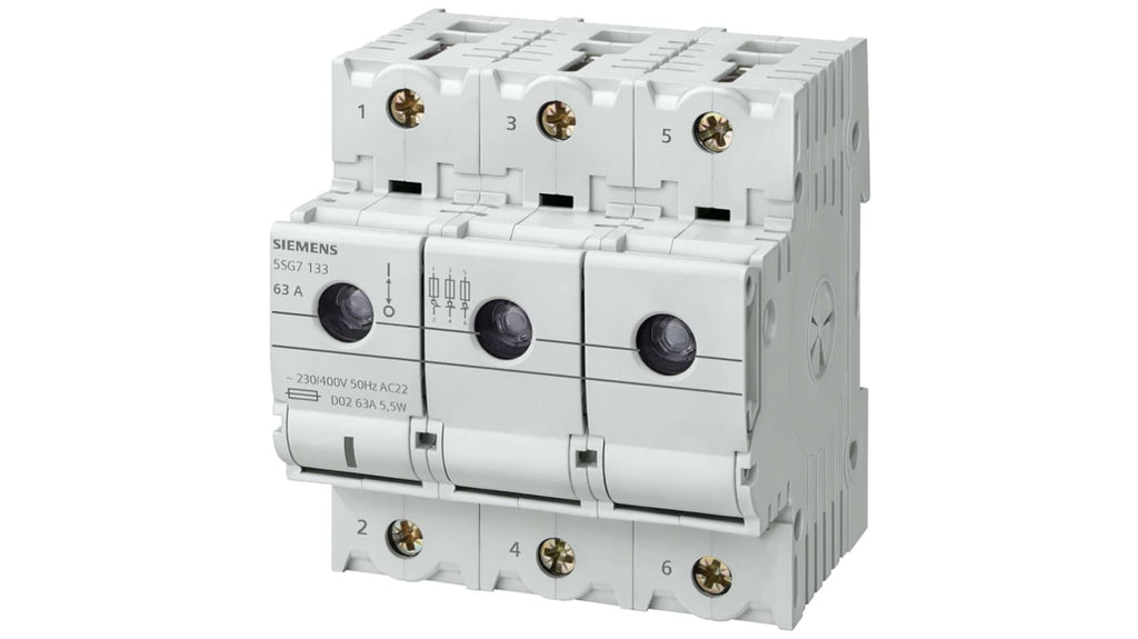 Sezionatore portafusibili Siemens, 3P+N, corrente massima 63A, tensione 400V, classe di protezione IP20, dimensioni fusibile D02, numero di poli 4, corrente nominale fusibile 63A, serie 5SG, tipo MINIZZATO.
