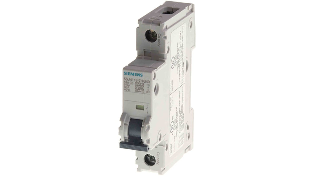Interruttore magnetotermico Siemens 1P 2A 14 kA, Tipo D, tensione nominale 240 V, capacità di commutazione 14 kA, corrente d'esercizio 2 A, montaggio su guida DIN, dimensioni 18 mm x 70 mm x 90 mm, serie 5SJ4, gamma SENTRON, modello 5SJ4102-8HG40. Interruzione sicura in caso di sovraccarico o cortocircuito.