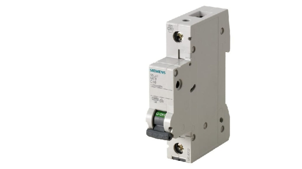 Interruttore magnetotermico Siemens 1P 1A 10 kA, Tipo C, tensione nominale 400 V, capacità di commutazione 10 kA, montaggio guida DIN, dimensioni 18 mm x 76 mm x 90 mm, contatto terminale a vite, adatto per protezione contro sovraccarichi e cortocircuiti, compatibile con dispositivi aggiuntivi. Codice costruttore 5SL4101-7.