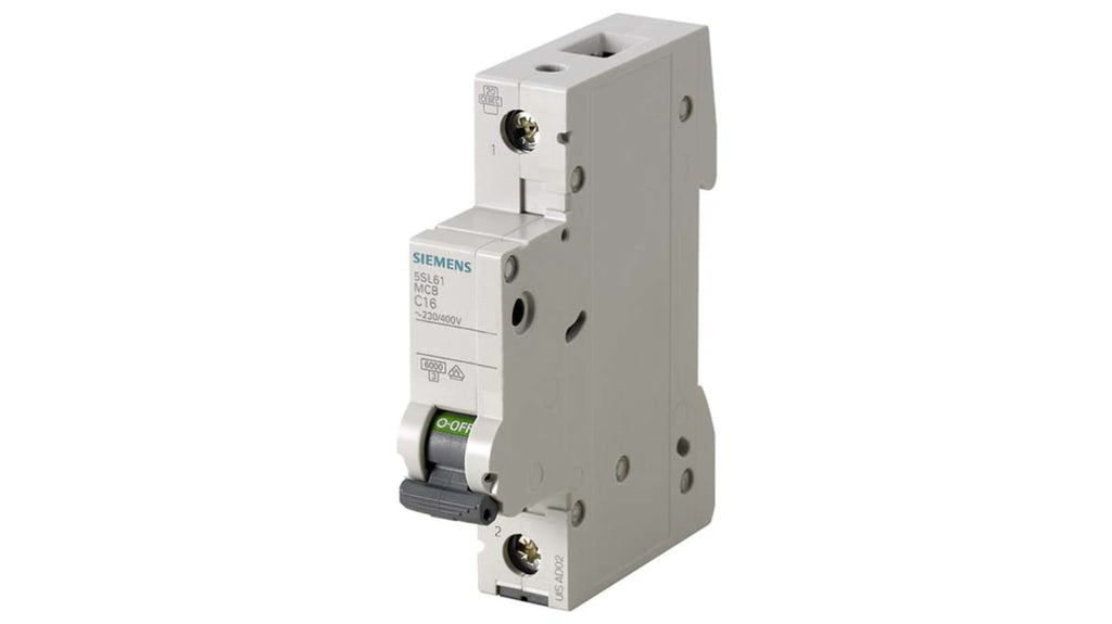 Interruttore magnetotermico Siemens 1P 32A 6 kA, Tipo C, montaggio su guida DIN, design a limitazione di corrente, capacità di interruzione 6 kA, classe di protezione IP20, serie 5SL6, tipo MCB. Adatto per applicazioni industriali, installazione facile e veloce.