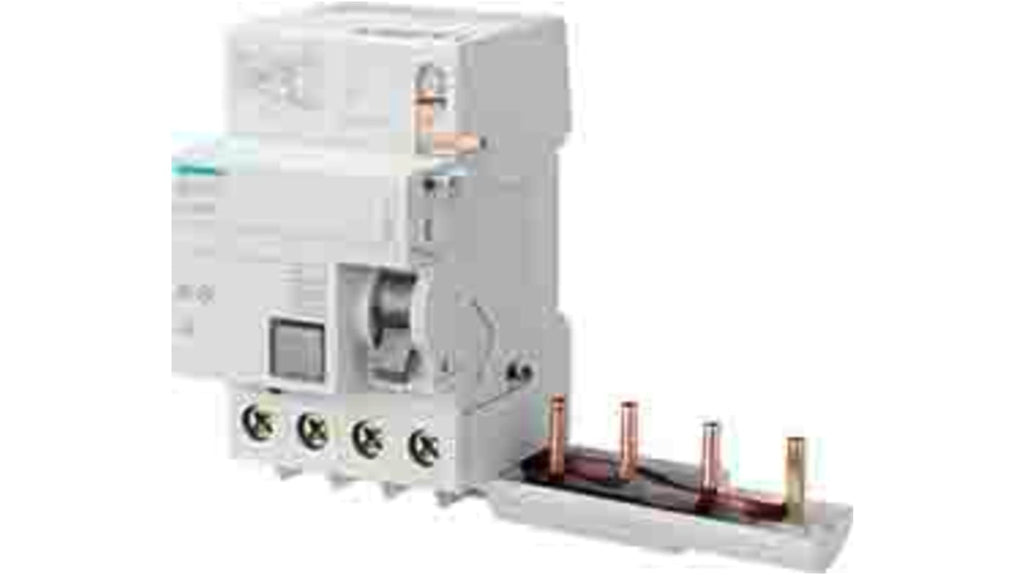 Modulo di collegamento per interruttori automatici, configurazione a 4 poli, tipo A. Corrente di guasto di scatto 300 mA, corrente d'esercizio 40 A. Protegge circuiti da sovraccarico e cortocircuito, garantendo sicurezza nelle installazioni elettriche. Compatibile con dispositivi Siemens 5SY. Marchio: Siemens, codice costruttore: 5SM2642-6.