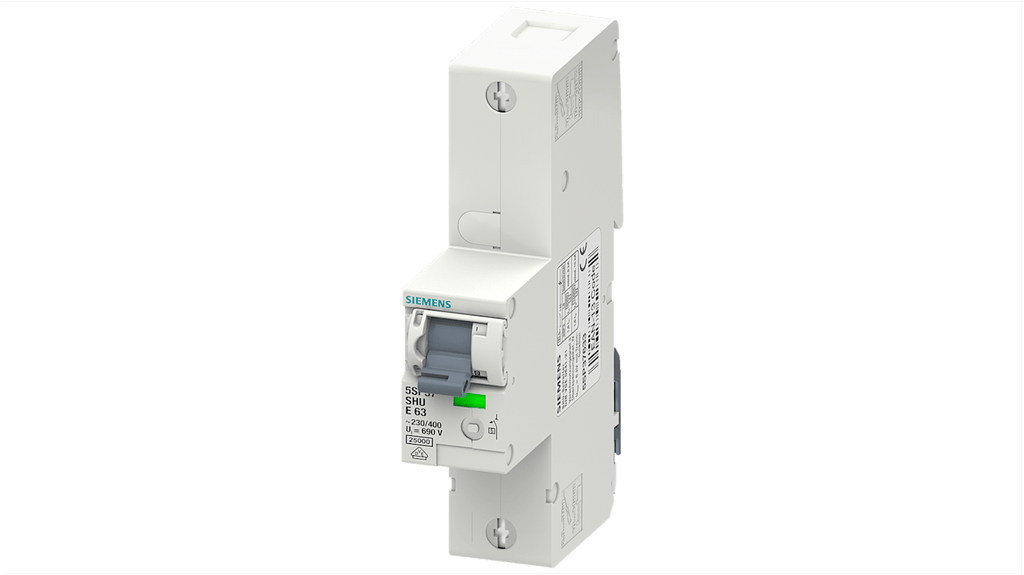 Interruttore magnetotermico 1 polo, corrente nominale 25A, caratteristica di intervento Tipo E, capacità di commutazione 25 kA, grado di protezione IP40, temperatura ambiente da -25 a 55 gradi Celsius, montaggio su guida DIN, serie 5SP3, codice costruttore 5SP3725-3, marchio Siemens.