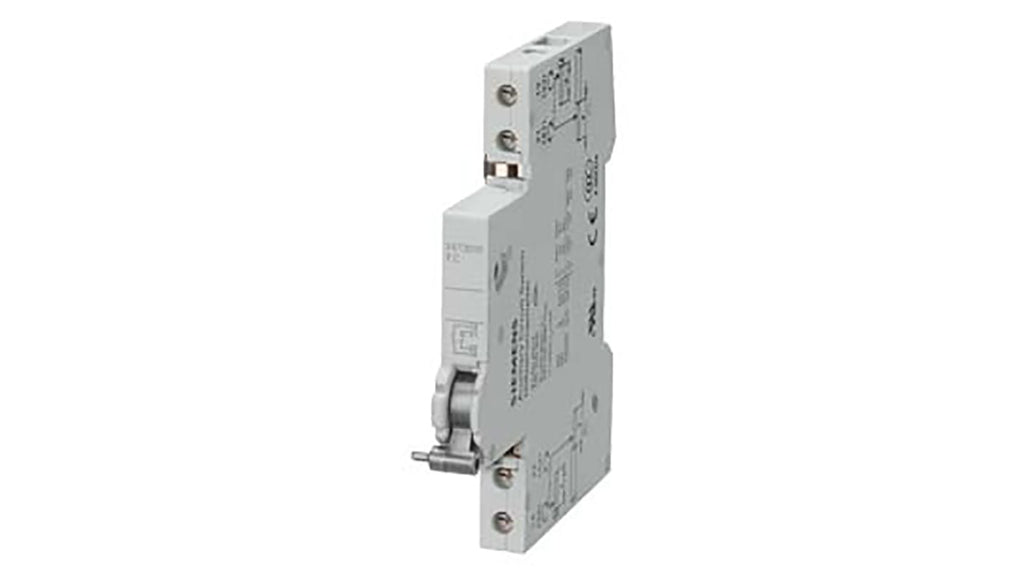 Dispositivo di segnalazione guasto Siemens, serie 5ST3, codice 5ST3020. Accessori per la gamma Siemens Sirius 5ST3, include dispositivo di bloccaggio con impugnatura, rilasci scatto automatici in derivazione, supporti per interruttore di segnalazione di guasto. Compatibile con morsettiere di distribuzione di tipo B e C, progettato per circuiti con corrente di spunto moderata ed elevata.