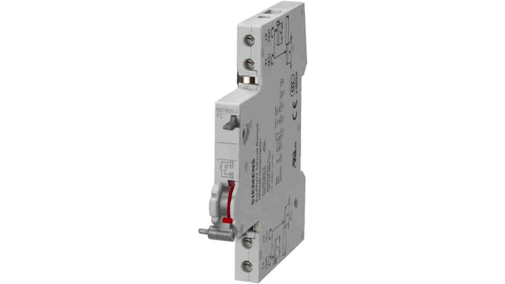 Contatto segnale di guasto Siemens, 2NC, per MCB con test e acknowledge, montaggio su guida DIN, compatibile con dispositivi di protezione da corrente residua e interruttori automatici miniaturizzati della serie SENTRON. Facile installazione, tecnologia di collegamento intuitiva, sicurezza affidabile con protezione touch standard. Codice costruttore 5ST3022-2.