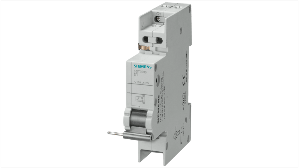 Contatto ausiliario Siemens, 2 contatti, 2NC, serie 5ST3, tensione nominale 12VAC/V c.c., larghezza 18mm, altezza 90mm, profondità 70mm, grado di protezione IP20, temperatura d'esercizio -25 °C a 55 °C. Prodotto della serie Siemens Sentron con scatto automatico in derivazione per MCB.