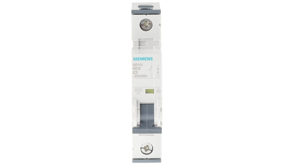 Interruttore magnetotermico Siemens, 1 polo, 1 A, caratteristica di intervento Tipo C, capacità di rottura 10 kA, tensione nominale 230 V, 400 V, montaggio su guida DIN, dimensioni 17.5 mm x 89.8 mm x 76 mm, serie 5SY4, standard IEC 60898. Progettato per applicazioni industriali e residenziali, offre interruzione automatica e opzioni di montaggio innovative.