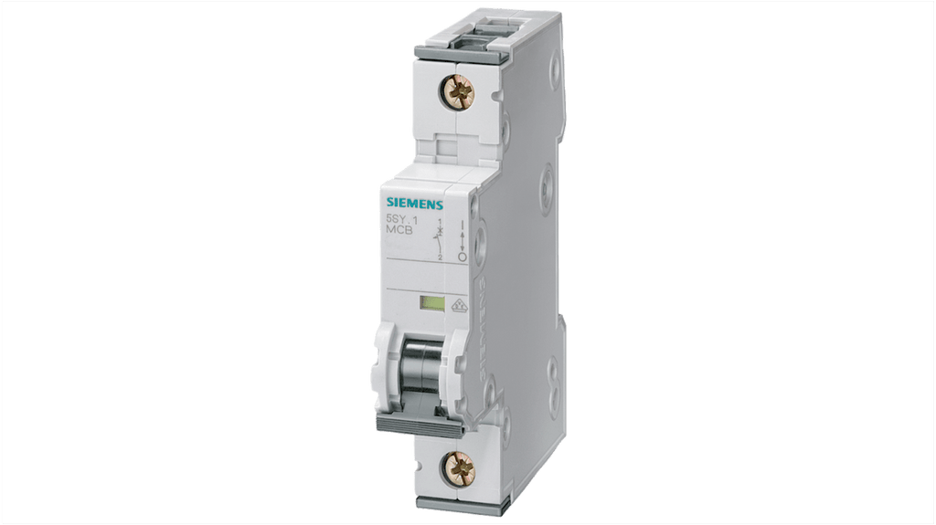 Interruttore automatico miniaturizzato Siemens 1P 8A, Tipo A, tensione 230/400 V, capacità di rottura 5 kA, montaggio guida DIN, larghezza 18 mm, lunghezza 90 mm, profondità 76 mm, classe di protezione IP20, serie SENTRON, codice costruttore 5SY4108-5.