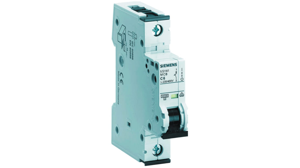Interruttore magnetotermico Siemens 1P 300mA 10 kA, Tipo C, Serie 5SY4, montaggio guida DIN, capacità di rottura 10 kA, tensione nominale 230 V, 400 V, dimensioni 89.8mm x 17.5mm x 76mm, conforme a IEC 60898. Caratteristiche di intervento B, C e D, progettato per applicazioni industriali e residenziali. Assemblato per foratura automatica, supporta rimozione rapida dall'assemblato.