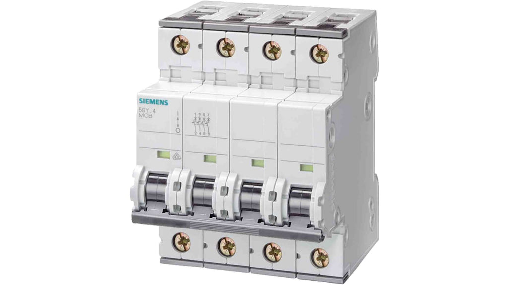 Interruttore magnetotermico Siemens 3P+N 10A 10 kA, Tipo D, tensione nominale 400 V, corrente d'esercizio 10 A, capacità di rottura 10 kA, montaggio guida DIN, larghezza 76 mm, lunghezza 72 mm, profondità 90 mm, tipo di contatto terminale a vite, serie 5SY4, gamma SENTRON, codice costruttore 5SY4610-8.