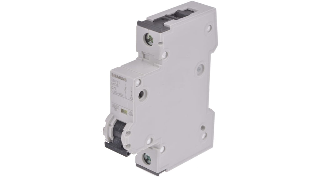 Interruttore automatico magnetotermico 1P 1A 6 kA, Tipo C, serie 5SY6, montaggio su guida DIN, grado di protezione IP20, tensione nominale 230 V, 400 V, tensione c.c. 72 V, capacità di rottura 6 kA, larghezza 17.5 mm, lunghezza 89.8 mm, profondità 76 mm, morsetti a vite, durata meccanica 10.000 operazioni, conforme a EN 60898, VDE 0641 parte 11, IEC 60898.
