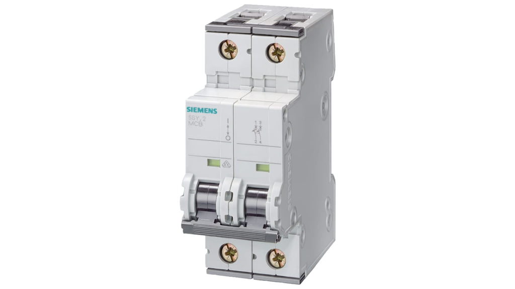 Interruttore automatico miniaturizzato 1P+N, 2A, 230 V, capacità di rottura 6 kA, caratteristica di intervento Tipo C, montaggio su guida DIN, dimensioni 76 mm x 35.2 mm x 90 mm, contatto terminale a vite, serie 5SY6, gamma Sentron, codice costruttore 5SY6502-7, marchio Siemens.