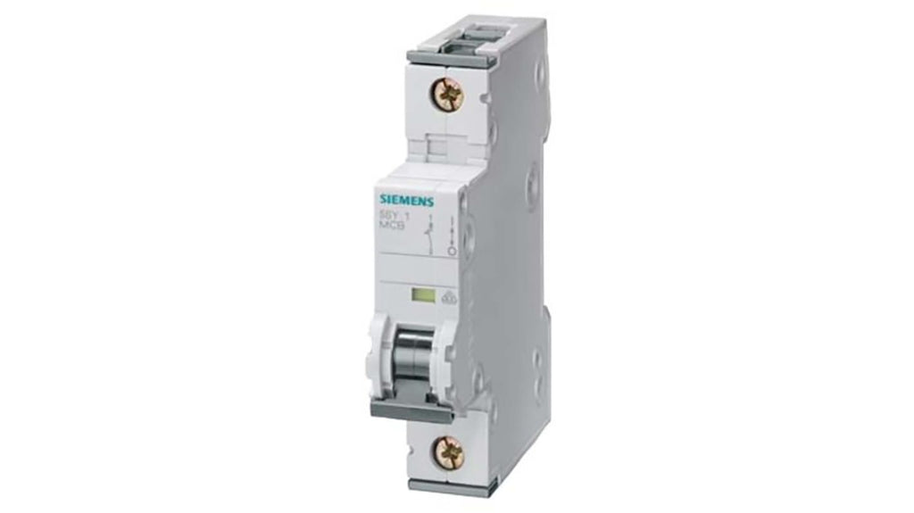 Interruttore magnetotermico Siemens 1P 10A 15 kA, Tipo D, montaggio su guida DIN, capacità di interruzione 15 kA, classe di protezione IP20, design a limitazione di corrente, installazione facile e veloce, serie 5SY7, gamma SENTRON, tipo MCB.