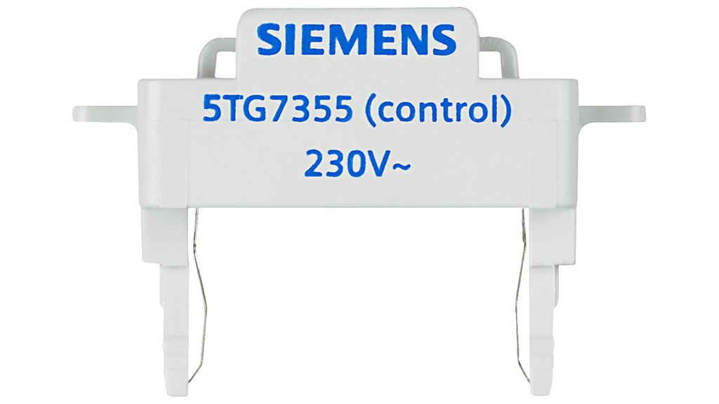 Interruttore a pulsante Siemens luminoso, codice 5TG7355, tensione nominale 230V, illuminato con lampada a incandescenza, inserto lampada LED blu. Prodotto dal marchio Siemens, progettato per funzioni di controllo.