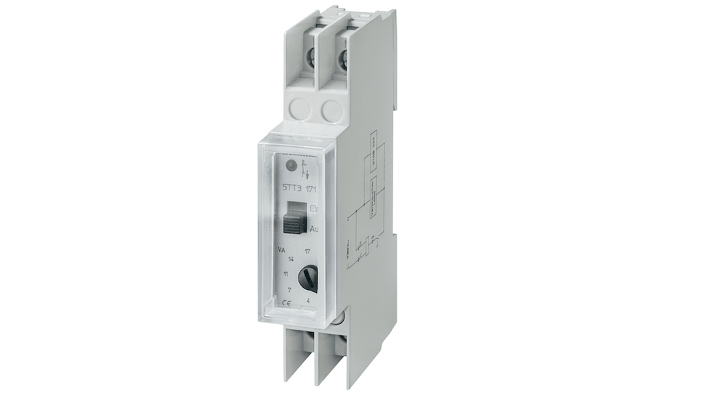 Relè di monitoraggio Siemens serie 5TT, NC, accoppiatore di rete T55 con cappuccio trasparente, rilevamento di sottocorrente di una fase, configurazione contatto NC, montaggio a telaio, numero di poli 1, tipo di terminale a vite, larghezza 18mm, lunghezza 64mm.