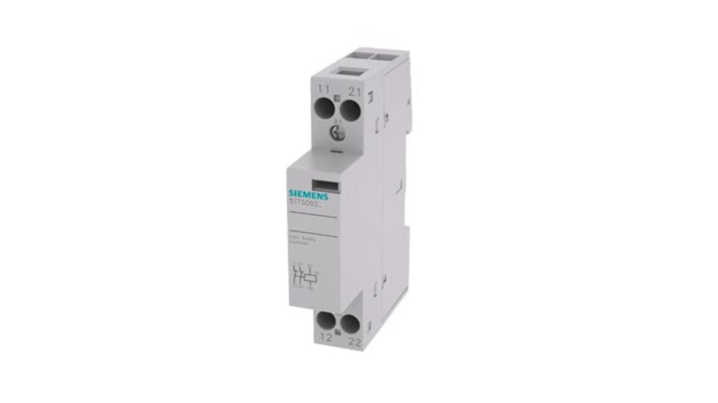 Contattore Siemens, serie 5TT, 2 poli, 2NC, 20 A, bobina 230 V c.a., tensione nominale contatto 230 V c.a., montaggio su guida DIN, tipo terminale a vite, dimensioni 35 mm x 90 mm x 70.7 mm, configurazione DPST, conforme alla norma EN 60947 e omologato a norma UL 508. Funzione automatica O/I, indicazione della posizione di commutazione.